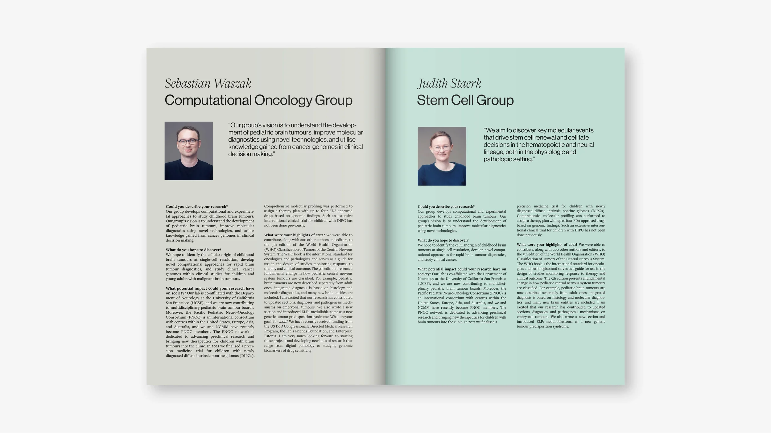 NCMM er et forskningssenter ved Universitetet i Oslo som arbeider med molekylærmedisin og presisjonshelse. Visuelt konsept for årsrapport.